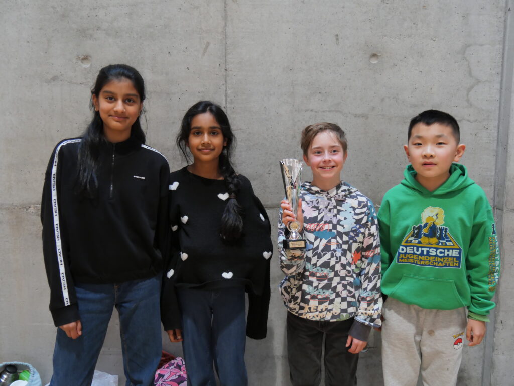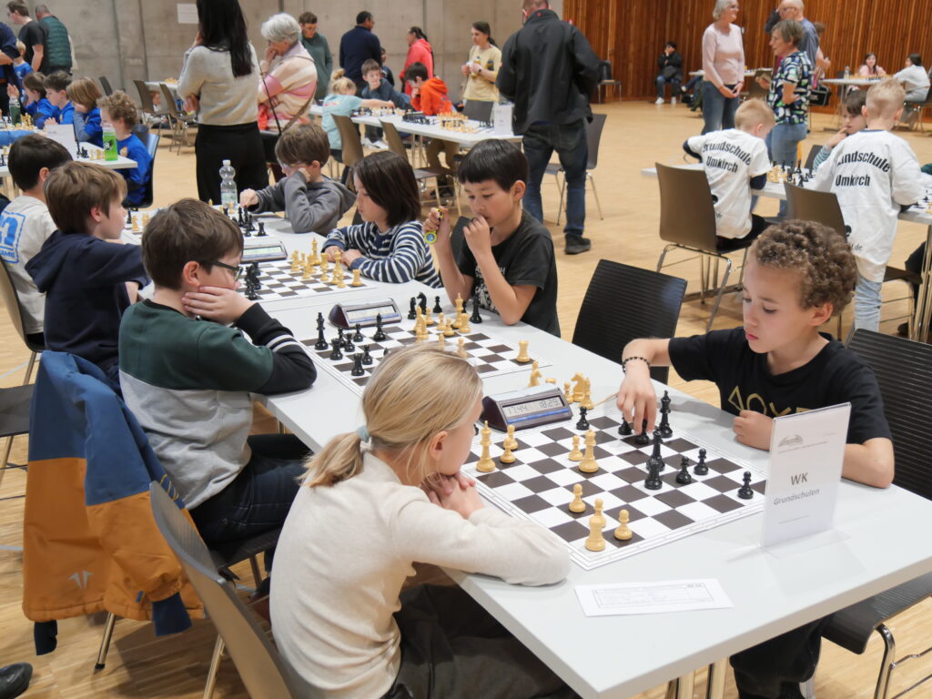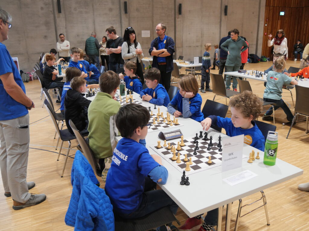 Gespielt wurde in insgesamt zehn verschiedenen Wettkampfklassen. Neben den begehrten Pokalen ging es für viele Teams auch um die Qualifikation zu den Deutschen Schulschachmeisterschaften. Dank des reibungslosen Ablaufs konnte die Siegerehrung sogar 15 Minuten früher als geplant beginnen. Viele Kinder nutzten jedoch noch das schöne Wetter draußen und vertrieben sich die Zeit auf dem Spielplatz oder beim Fußballspielen – und bekamen so den Beginn der Siegerehrung gar nicht mit. Am Ende konnten die drei Erstplatzierten jeder Gruppe aber stolz ihre Pokale entgegennehmen.